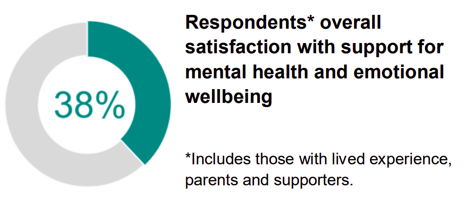Online survey respondents* satisfaction overall with support for mental health and emotional wellbeing: 38%
