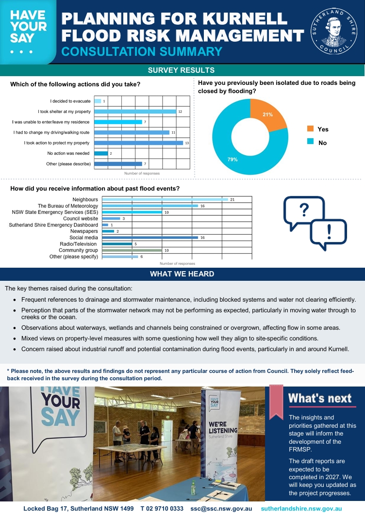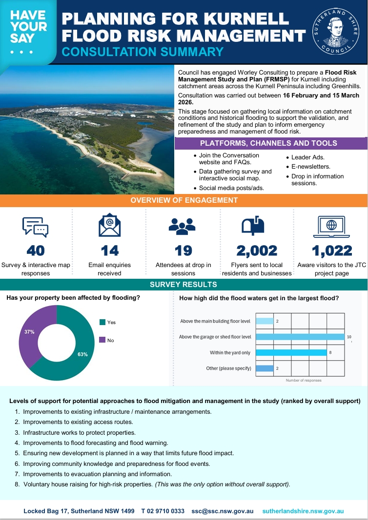 The Kurnell FRMSP will help us understand local flooding issues and develop practical, evidence-based flood mitigation priorities that are eligible for state government funding support.